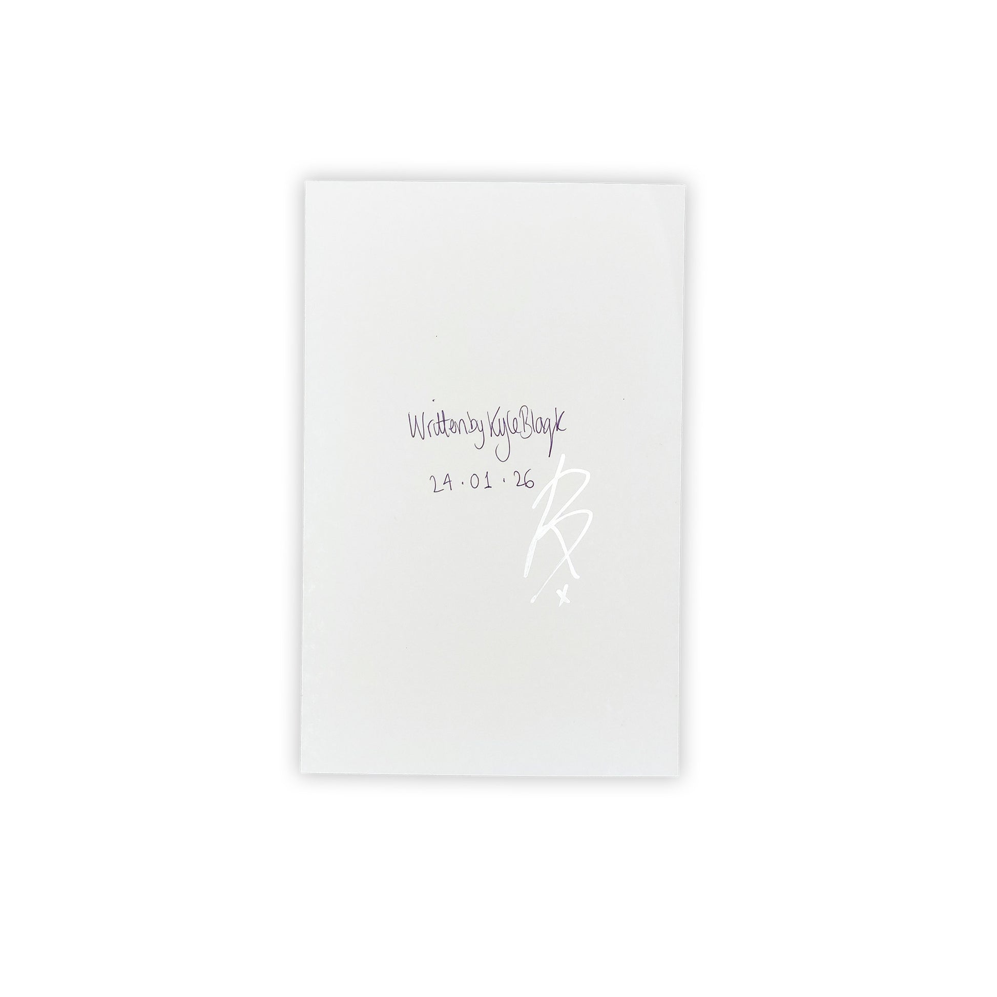 Number 0005 - This collage style lyric sheet features the lyrics from My Guardian on a thick sheet of card and comes with a protective plastic film. The card stamped on the front, features silver accents and is also signed, and dated, on the back. As with all orders on our shop, this comes with a handwritten thank you card from Kyle.